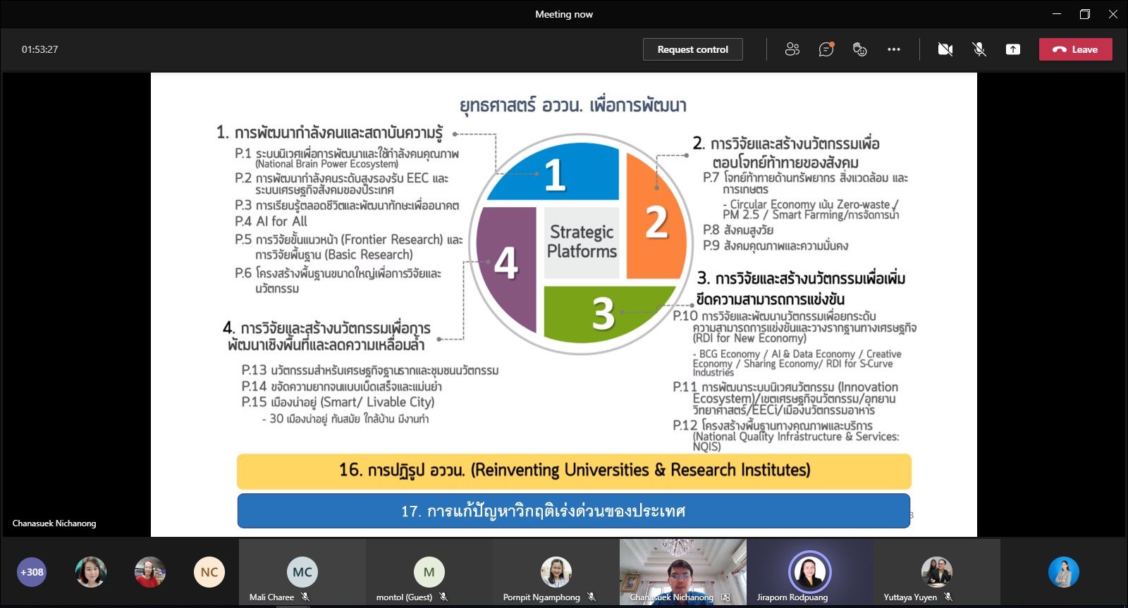 โดยในกิจกรรมนี้ได้รับเกียรติจาก รองศาสตราจารย์ ดร.ชนะศึก นิชานนท์ รองอธิการบดีฝ่ายวิจัยและพัฒนาการศึกษา บรรยายในหัวข้อ แนวทางการสนับสนุนทุนด้านการวิจัยและนวัตกรรม และผู้ช่วยศาสตราจารย์ ดร.ยุธยา อยู่เย็น ผู้อำนวยการสถาบันวิจัยและพัฒนา ชี้แจงแนวทางการพิจารณาแหล่งงบประมาณเพื่อขอสนับสนุนงบประมาณด้านวิจัยและนวัตกรรม อีกทั้งยังมีการให้ความรู้เกี่ยวกับแนวทางการสนับสนุนทุนพัฒนานวัตกรรมและถ่ายทอดเทคโนโลยีอีกด้วย