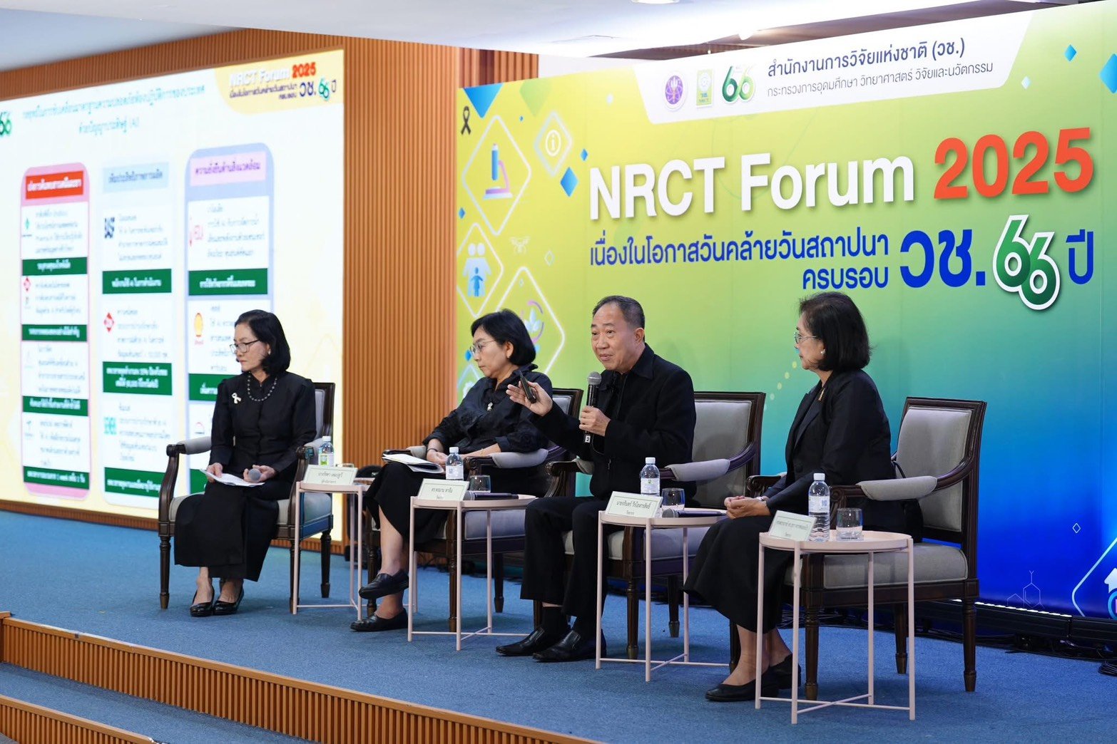 สถาบันวิจัยและพัฒนา มหาวิทยาลัยสวนดุสิต (มสด.) โดย ผู้ช่วยศาสตราจารย์ ดร.จิตต์วิมล คล้ายสุบรรณ ผู้อำนวยการสถาบันวิจัยและพัฒนา เข้าร่วมพิธีเปิดงาน NRCT Forum 2025 พร้อมร่วมแสดงความยินดีในโอกาสวันคล้ายวันสถาปนาครบรอบ 66 ปี สำนักงานการวิจัยแห่งชาติ (วช.) งานดังกล่าวจัดขึ้นเพื่อส่งเสริมให้ภาคีเครือข่ายงานวิจัยจากทุกภาคส่วนและประชาชนทั่วไป ได้ร่วมแลกเปลี่ยนความรู้ และเห็นถึงคุณค่าของงานวิจัยและนวัตกรรมที่เป็นประโยชน์ต่อการพัฒนาประเทศ เมื่อวันที่ 26 พฤศจิกายน พ.ศ. 2568 ณ ห้องประชุมจอมพลสฤษดิ์ ธนะรัชต์ ชั้น 2 อาคาร วช. 1ในโอกาสนี้ สถาบันวิจัยและพัฒนา มหาวิทยาลัยสวนดุสิต ขอร่วมแสดงความยินดีต่อ วช. เนื่องในวาระครบรอบ 66 ปี ในฐานะหน่วยงานหลักที่มีบทบาทสำคัญในการสนับสนุนและพัฒนาระบบวิจัยของประเทศ โดยเฉพาะแนวทางการดำเนินงานตามเป้าหมาย สานพลังองค์ความรู้ เชิดชูคุณค่านักวิจัย ยกระดับอนาคตไทย ด้วยวิจัยและนวัตกรรม ซึ่งสอดคล้องกับพันธกิจของมหาวิทยาลัยสวนดุสิตในการสร้างสรรค์และเผยแพร่องค์ความรู้และนวัตกรรมเพื่อสังคมอย่างยั่งยืน