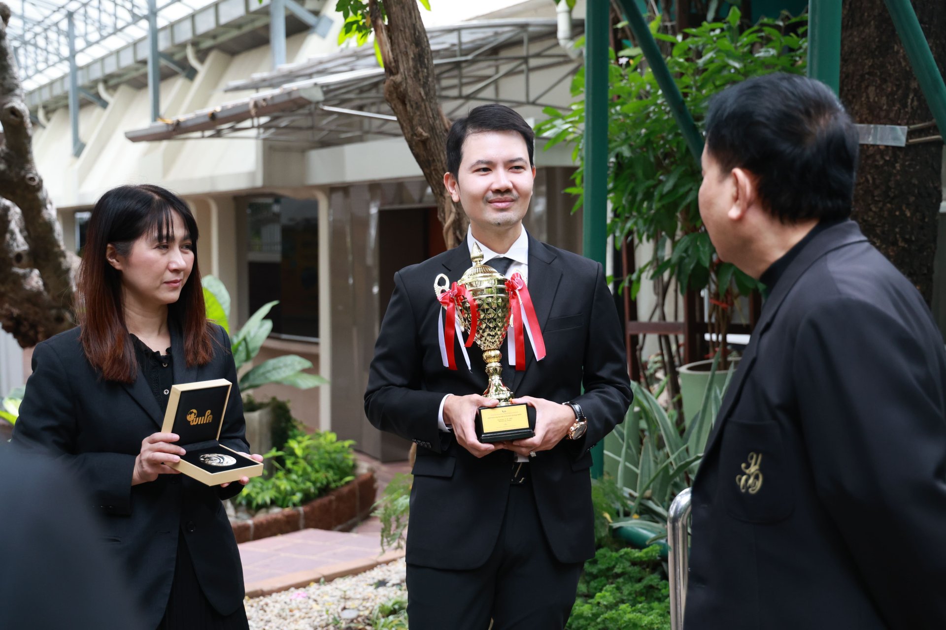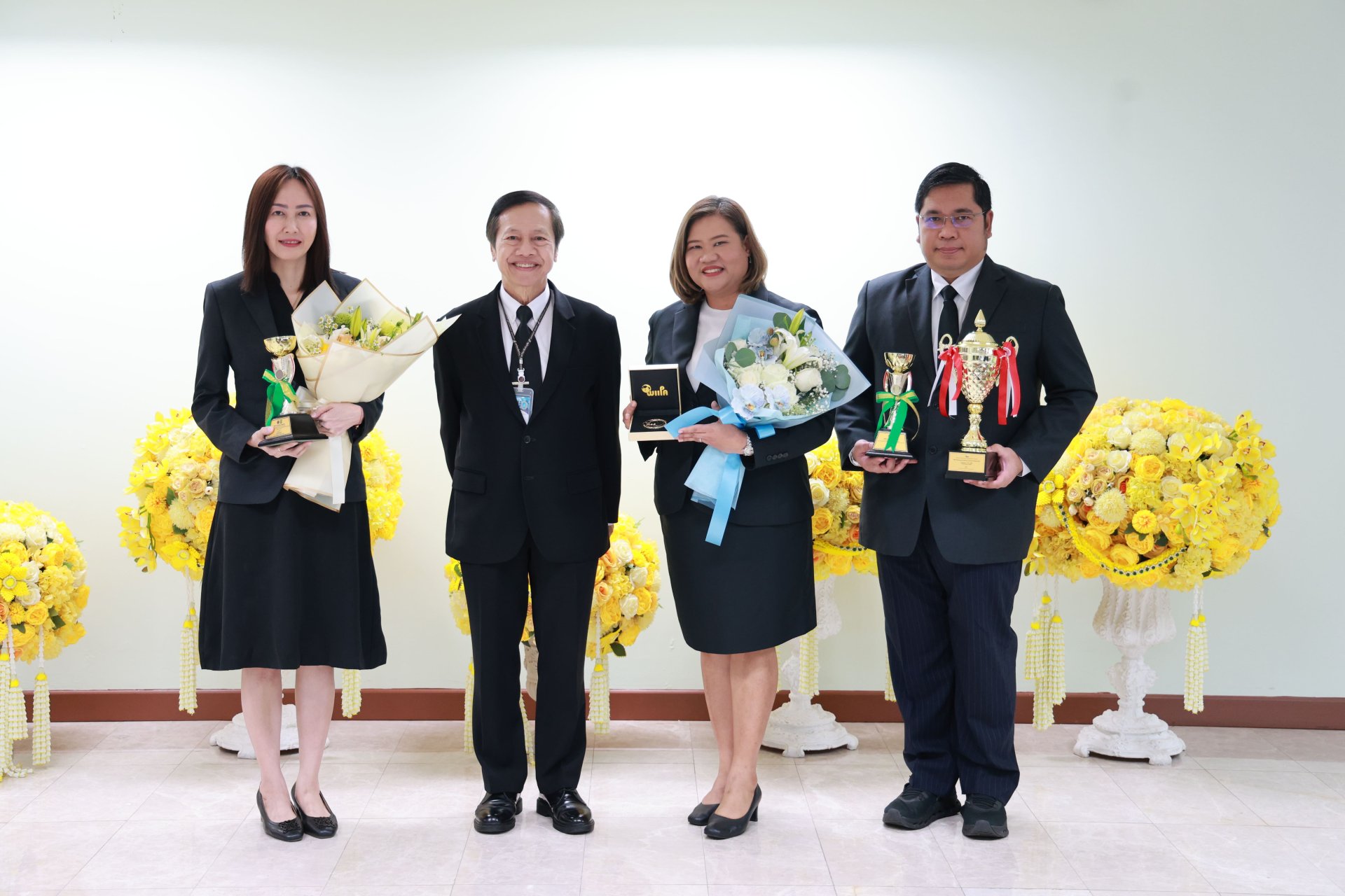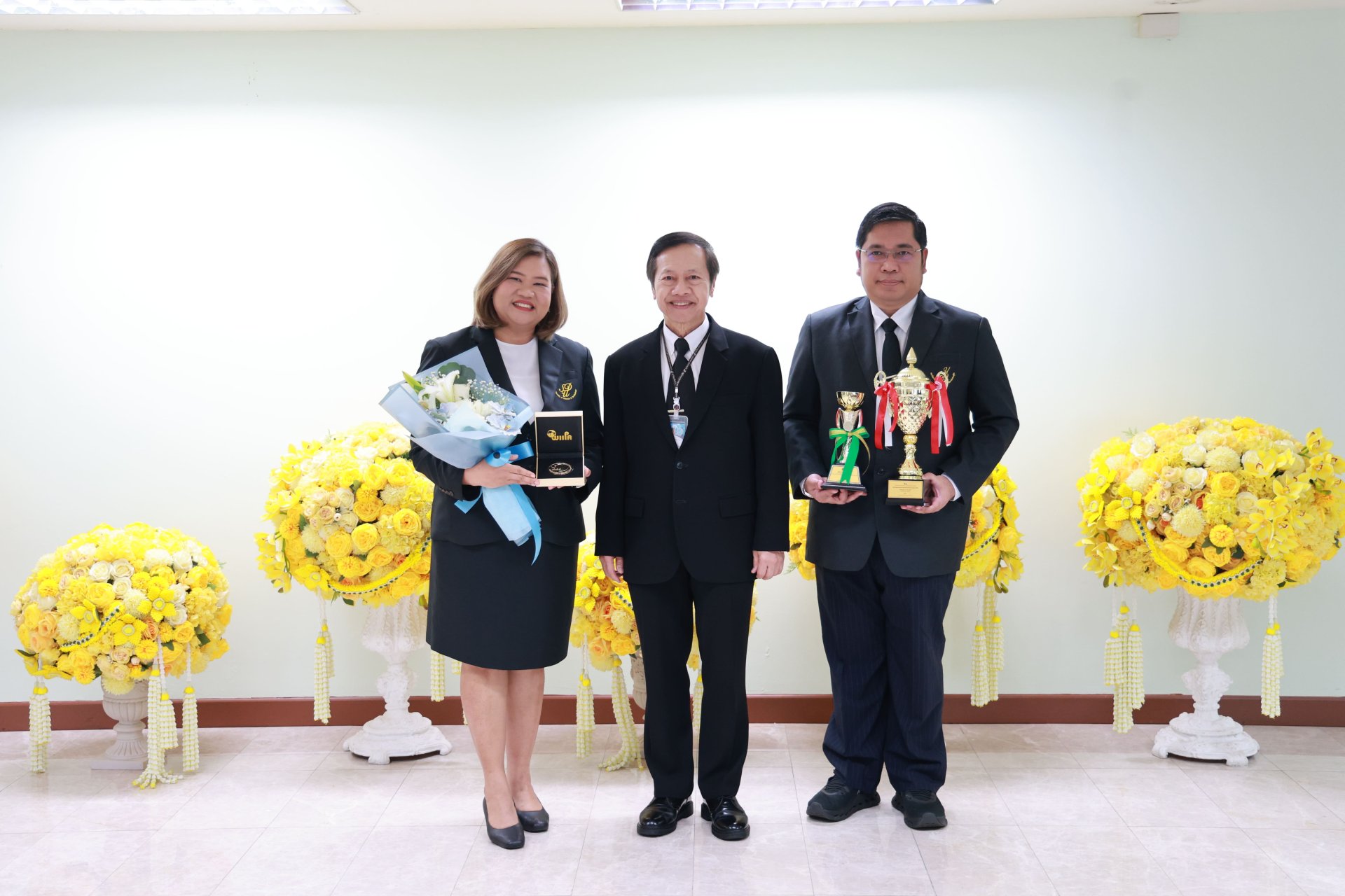 รศ.ดร.ชนะศึก นิชานนท์ รองอธิการบดีฝ่ายบริหาร วิจัยและนวัตกรรม พร้อมด้วย ผศ.ดร.จิตต์วิมล คล้ายสุบรรณ์ ผู้อำนวยการสถาบันวิจัยและพัฒนา และทีมวิจัยที่ได้รับเหรียญรางวัลจากการประกวดนวัตกรรมจากงานวิจัยเข้าร่วมงาน “2025 Kaohsiung International Invention & Design EXPO” ประจำปี 2568 ณ เมืองเกาสง ไต้หวัน ในระหว่างวันที่ 4-6 ธันวาคม พ.ศ. 2568 ที่ผ่านมา เข้าพบ ศ.ดร.ศิโรจน์ ผลพันธิน ที่ปรึกษาอธิการบดี และผศ.ดร.พิทักษ์ จันทร์เจริญ อธิการบดี เพื่อรายงานผลการเข้าร่วมประกวดนวัตกรรมและรับฟังข้อเสนอแนะ ในการดำเนินงานด้านนวัตกรรมวิจัยของมหาวิทยาลัย เมื่อวันที่ 11 ธันวาคม พ.ศ. 2568 โดยนักวิจัยจาก มหาวิทยาลัยสวนดุสิตคว้ารางวัลนานาชาติรวมทั้งสิ้น 7 รางวัล ได้แก่