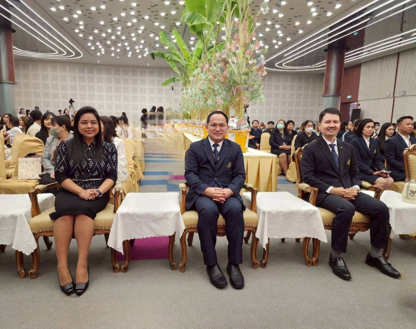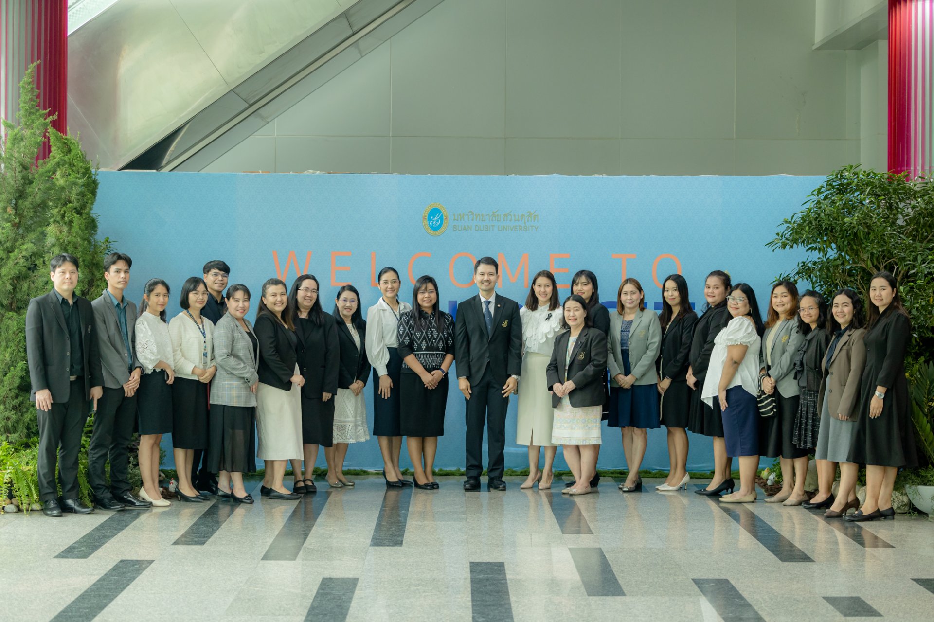 รศ.ดร.ชนะศึก นิชานนท์ รองอธิการบดีฝ่ายบริหาร วิจัย และนวัตกรรม พร้อมด้วย ผศ.ดร.จิตต์วิมล คล้ายสุบรรณ ผู้อำนวยการสถาบันวิจัยและพัฒนา มหาวิทยาลัยสวนดุสิต นำคณะผู้บริหารและบุคลากรสถาบันวิจัยและพัฒนา เข้าร่วมพิธีเทศน์มหาชาติเวสสันดรชาดก 2 ธรรมสน์ บูชากัณฑ์เทศน์ และร่วมเป็นเจ้าภาพกัณฑ์เทศน์มหาชาติ “กัณฑ์ทานกัณฑ์ – กัณฑ์วนประเวสน์” เพื่อน้อมรำลึกในพระมหากรุณาธิคุณ สมเด็จพระนางเจ้าสิริกิติ์ พระบรมราชินีนาถ พระบรมราชชนนีพันปีหลวง และร่วมสืบทอดพระพุทธศาสนา เผยแพร่ความรู้เกี่ยวกับมหาเวสสันดรชาดก และจัดหาทุนการศึกษาให้กับนักศึกษา ในวันจันทร์ที่ 9 กุมภาพันธ์ พ.ศ. 2569 ณ หอประชุมรักตะกนิษฐ มหาวิทยาลัยสวนดุสิต