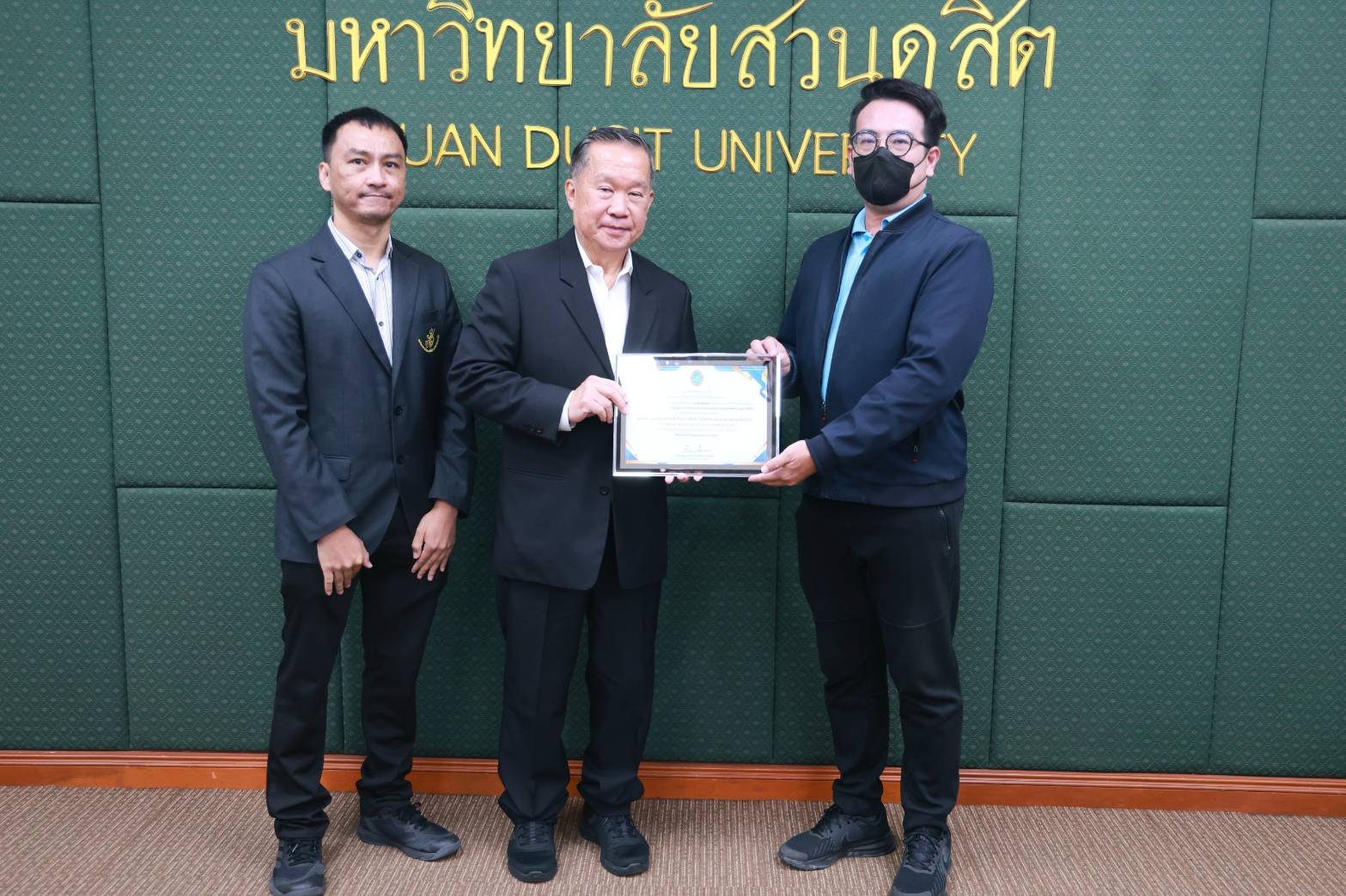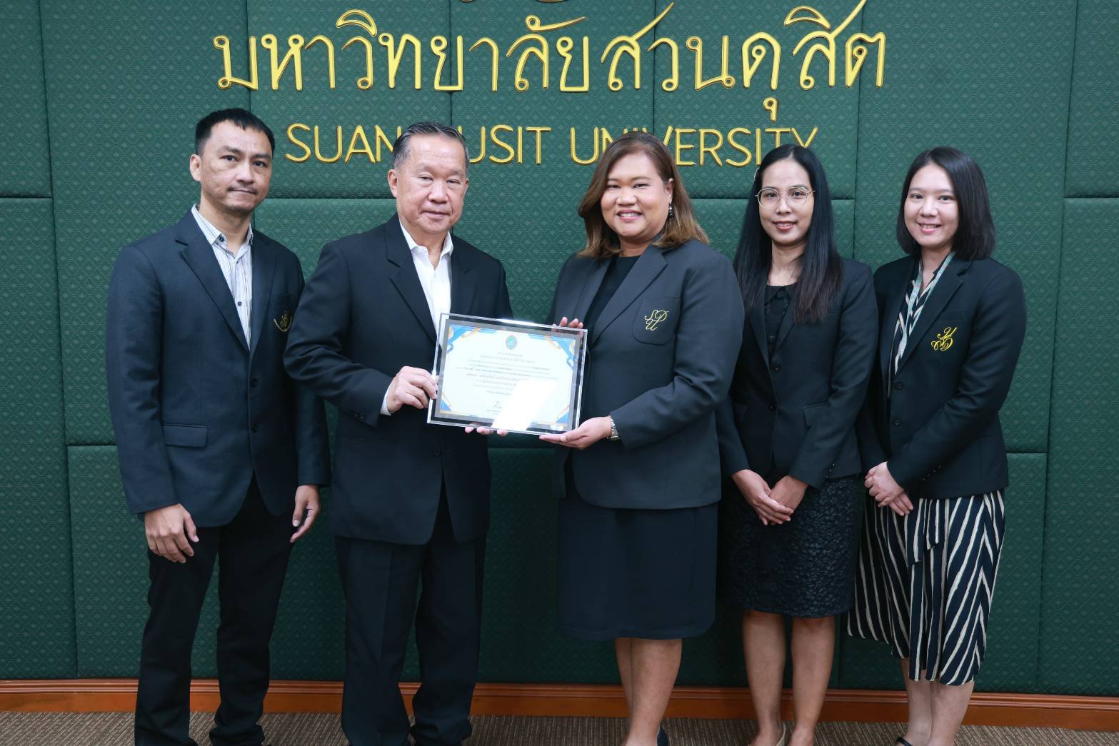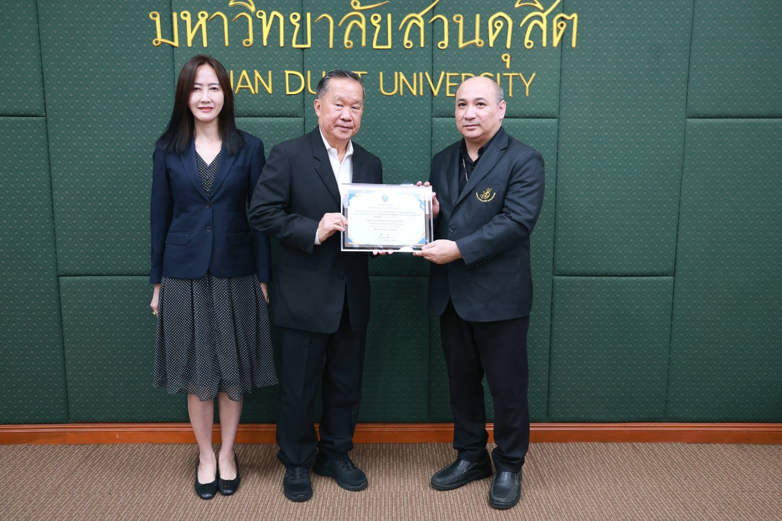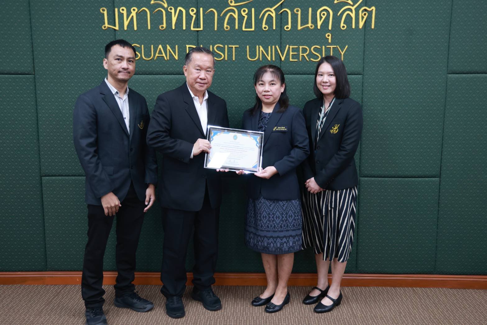 สถาบันวิจัยและพัฒนา มหาวิทยาลัยสวนดุสิต จัดพิธีมอบรางวัลนักวิจัยดีเด่น รางวัลผลงานวิจัยดีเด่น และรางวัลผู้สร้างชื่อเสียงในระดับนานาชาติ ปี พ.ศ. 2568 ในการประชุมสภามหาวิทยาลัย ครั้งที่ 3(31)/2569 โดยได้รับเกียรติจาก ดร.ถนอม อินทรกำเนิด นายกสภามหาวิทยาลัย มอบรางวัลนักวิจัยดีเด่น สาขาวิทยาศาสตร์และเทคโนโลยี ได้แก่ ผู้ช่วยศาสตราจารย์ ดร.ปัญญภัสก์ ปิ่นแก้ว สังกัดโรงเรียนการเรือน รางวัลนักวิจัยดีเด่น สาขามนุษยศาสตร์และสังคมศาสตร์ จำนวน 2 ราย ได้แก่ รองศาสตราจารย์ ดร.วรวิทย์ กิจเจริญไพบูลย์ สังกัดคณะมนุษยศาสตร์และสังคมศาสตร์ และดร.ขวัญนภา สุขคร สังกัดศูนย์การศึกษาลำปาง และมอบรางวัลผลงานวิจัยดีเด่น ด้านการใช้ประโยชน์เชิงวิชาการ ได้แก่ ดร.วีรชน ภูหินกอง สังกัดคณะวิทยาศาสตร์และเทคโนโลยี พร้อมทั้งได้รับเกียรติจาก คุณธงชัย ศรีดามา อุปนายกสภามหาวิทยาลัย มอบรางวัลผู้สร้างชื่อเสียงในระดับนานาชาติ โดยนำผลงานวิจัยและนวัตกรรมเข้าร่วมประกวด และจัดแสดงในเวทีนานาชาติ จำนวน 3 เวทีสำคัญ ได้แก่ 1.งาน “The 50th International Exhibition of Inventions Geneva” ณ นครเจนีวา สมาพันธรัฐสวิส 2.งาน “The 8th China (Shanghai) International Invention & Innovation Expo 2025”ณ เมืองเซี่ยงไฮ้ สาธารณรัฐประชาชนจีน และ 3.งาน “Kaohsiung International Invention & Design EXPO (KIDE 2025)” ณ เมืองเกาสง ไต้หวัน ซึ่งพิธีมอบรางวัลจัดขึ้น ในวันที่ 27 มีนาคม พ.ศ. 2569 ณ ห้องประชุมลำพอง 2 มหาวิทยาลัยสวนดุสิต